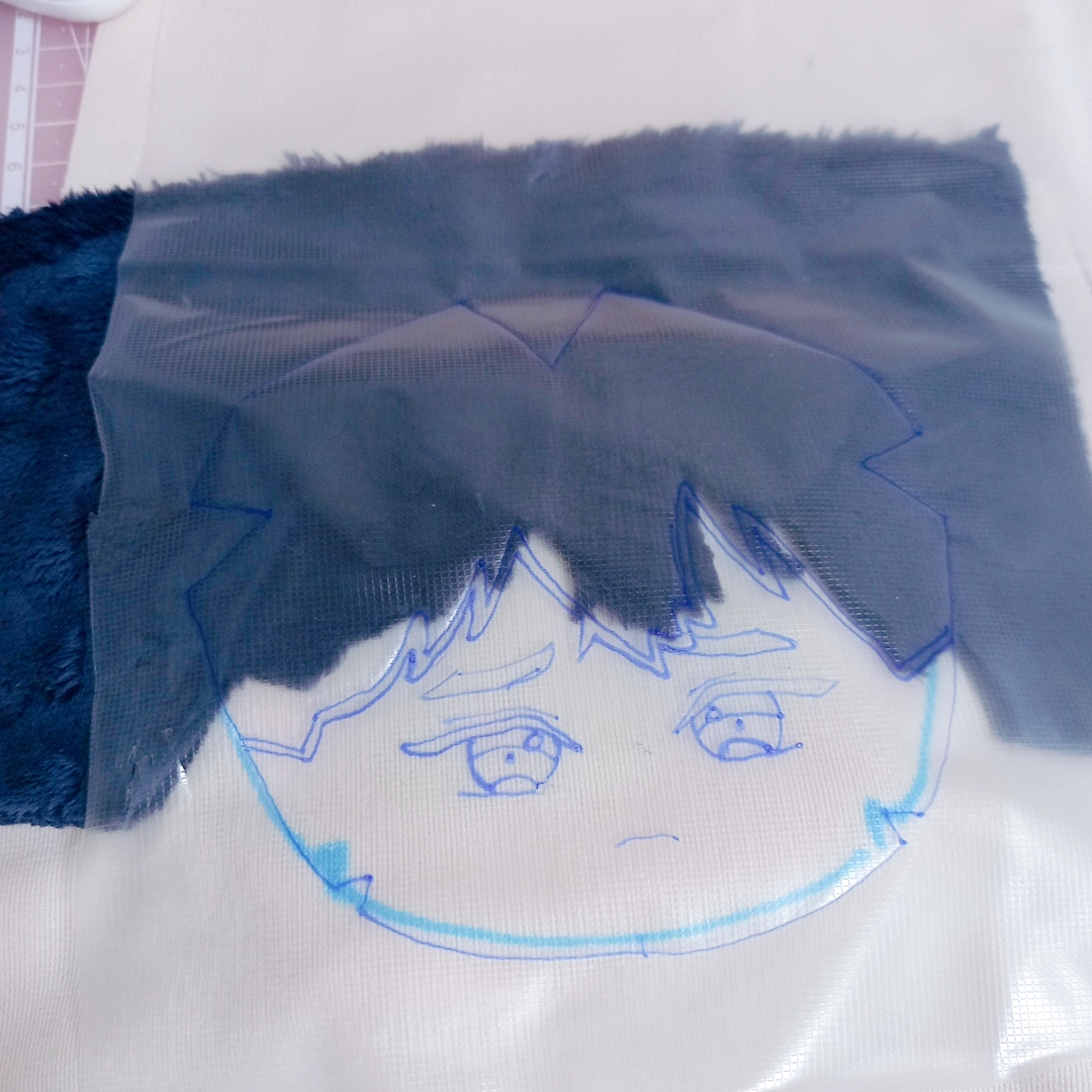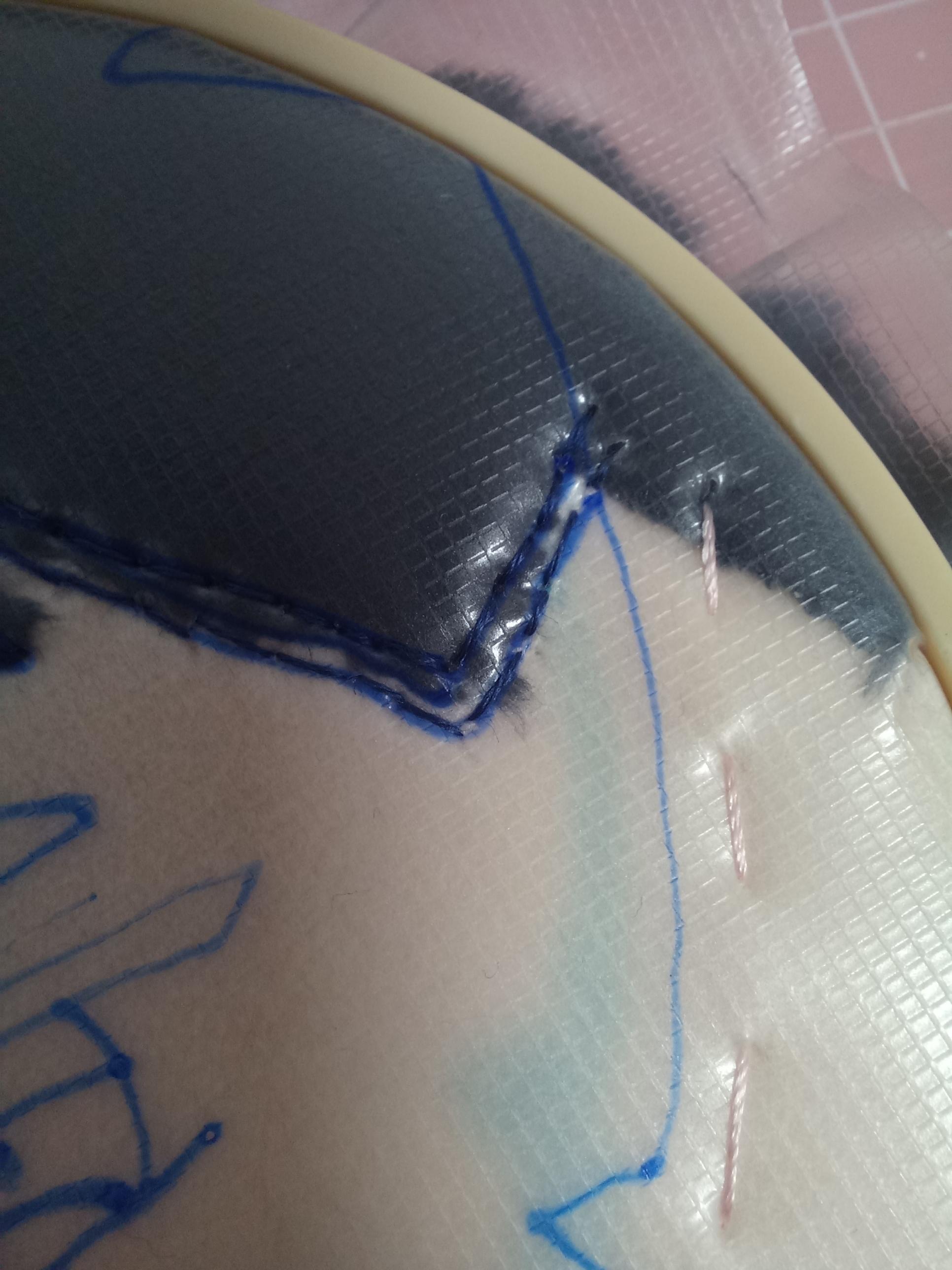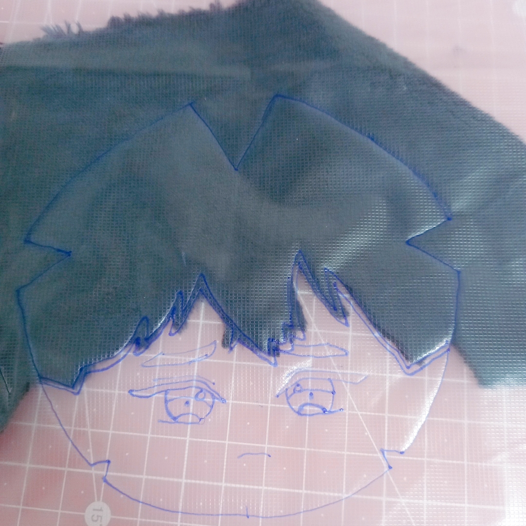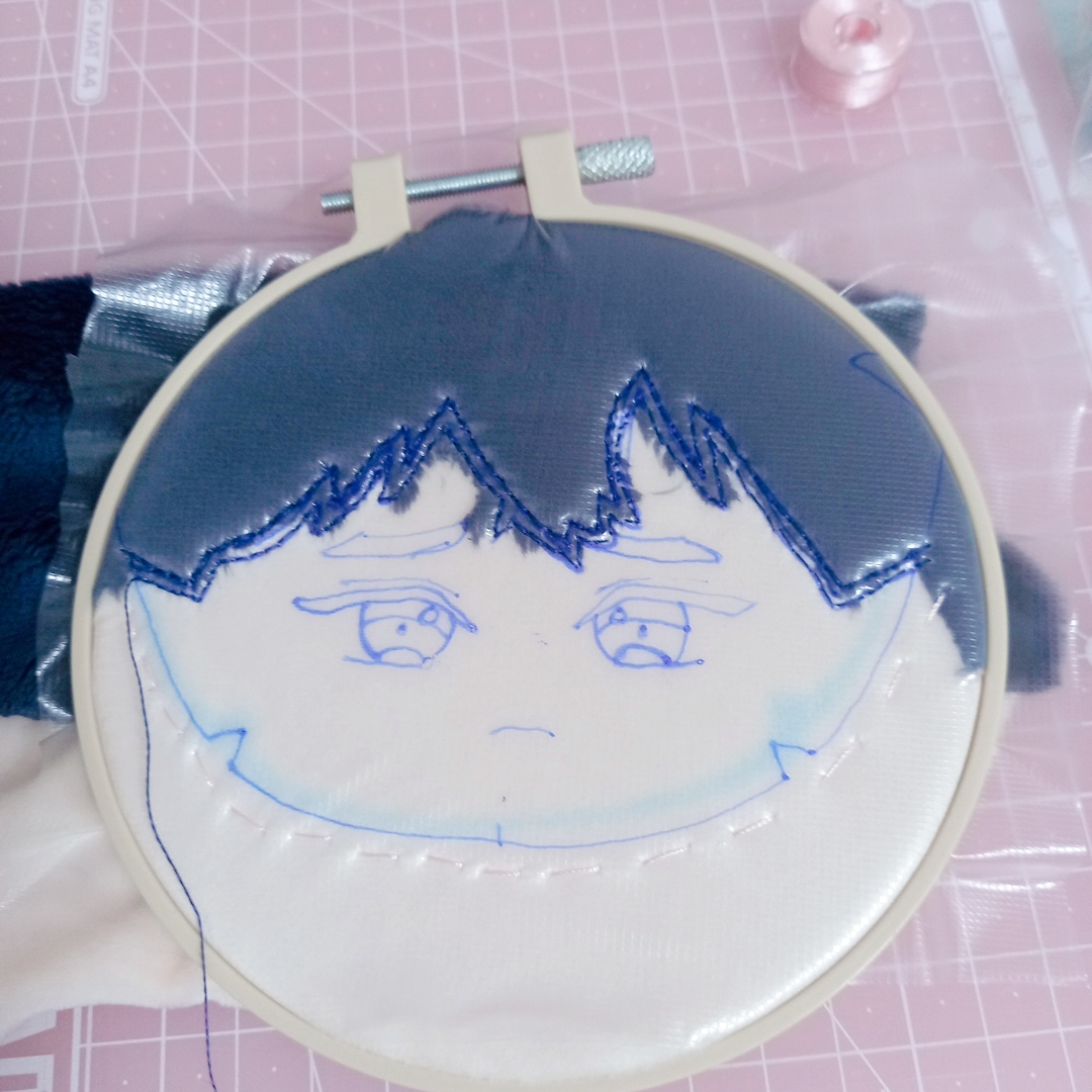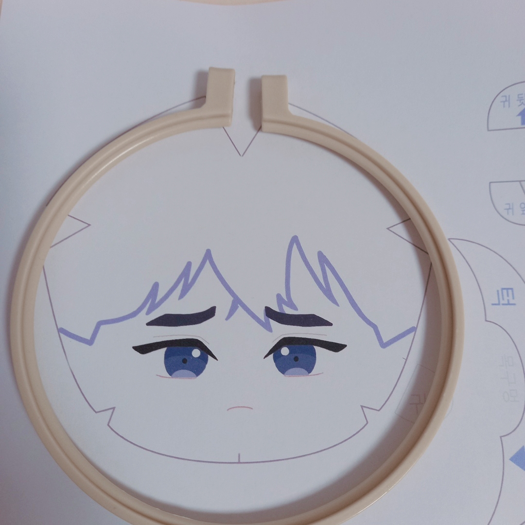 참고한 유튜브들은 얼굴 자수부터 놓고 헤어 원단 잘라서 끼워넣고 라인넣어주던데