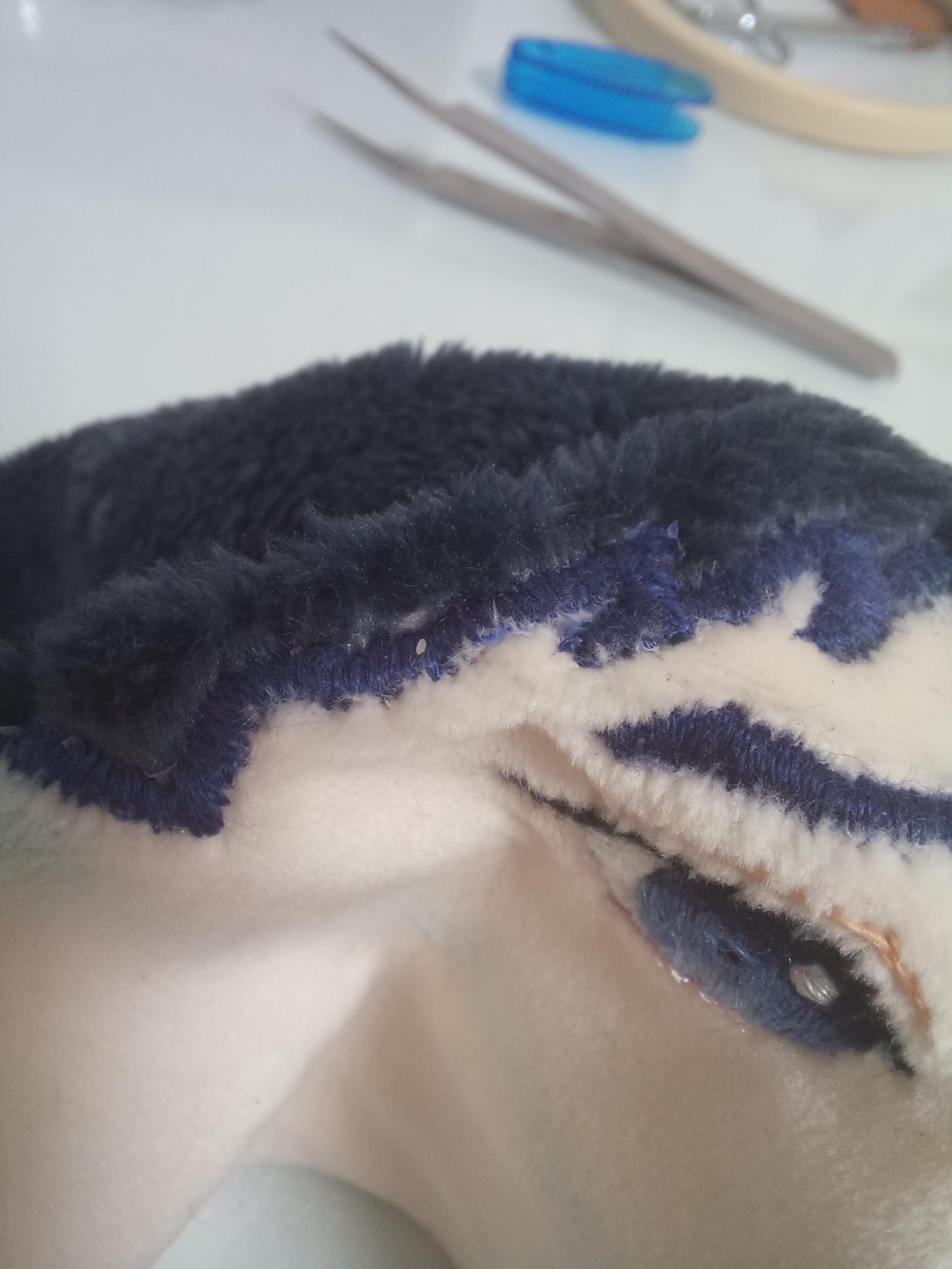 원단 위아래를 따라서 아웃라인을따줬어야 튼튼하게 되는건데 털 길이를 간과했다